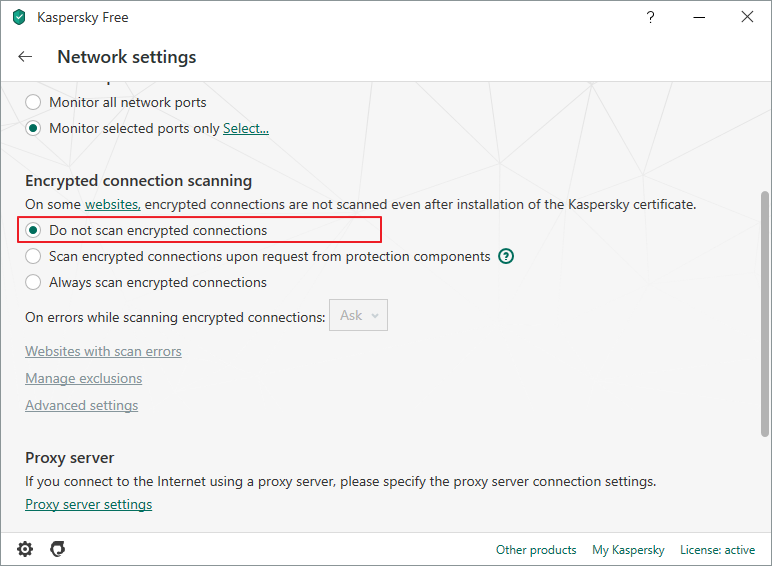 해당 이슈를 해결하기 위해서 Kaspersky Free의 설정을 변경해야 합니다.