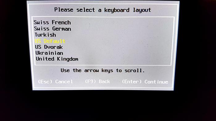 키보드 배열은 US Default를 선택합니다.