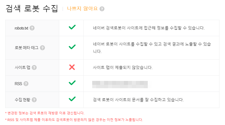 사이트를 추가한 이후에 사이트 최적화에서 RSS가 정상적으로 표시되지 않는 경우가 있습니다.