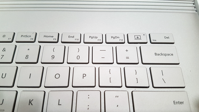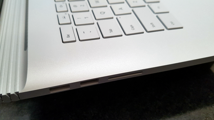 서피스 북의 특징인 탈착을 위한 버튼이 우측 상단부에 위치하고 있습니다.