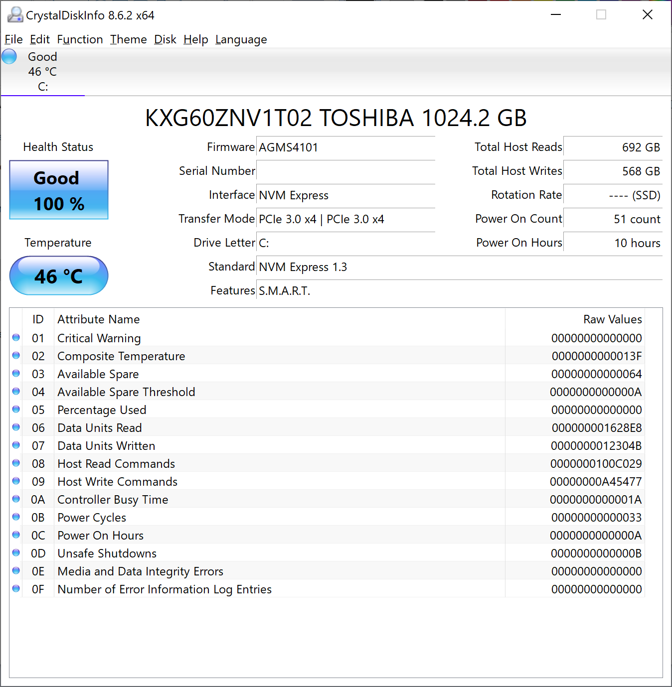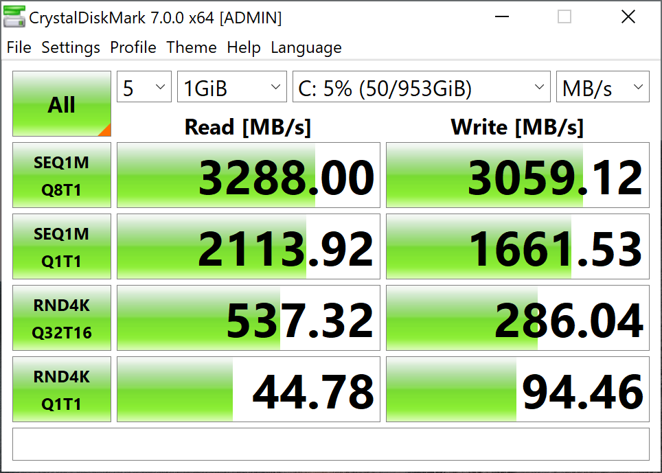 도시바 제품이라고 표시되는 NVMe SSD는 전체적으로 준수한 성능을 보여줍니다.