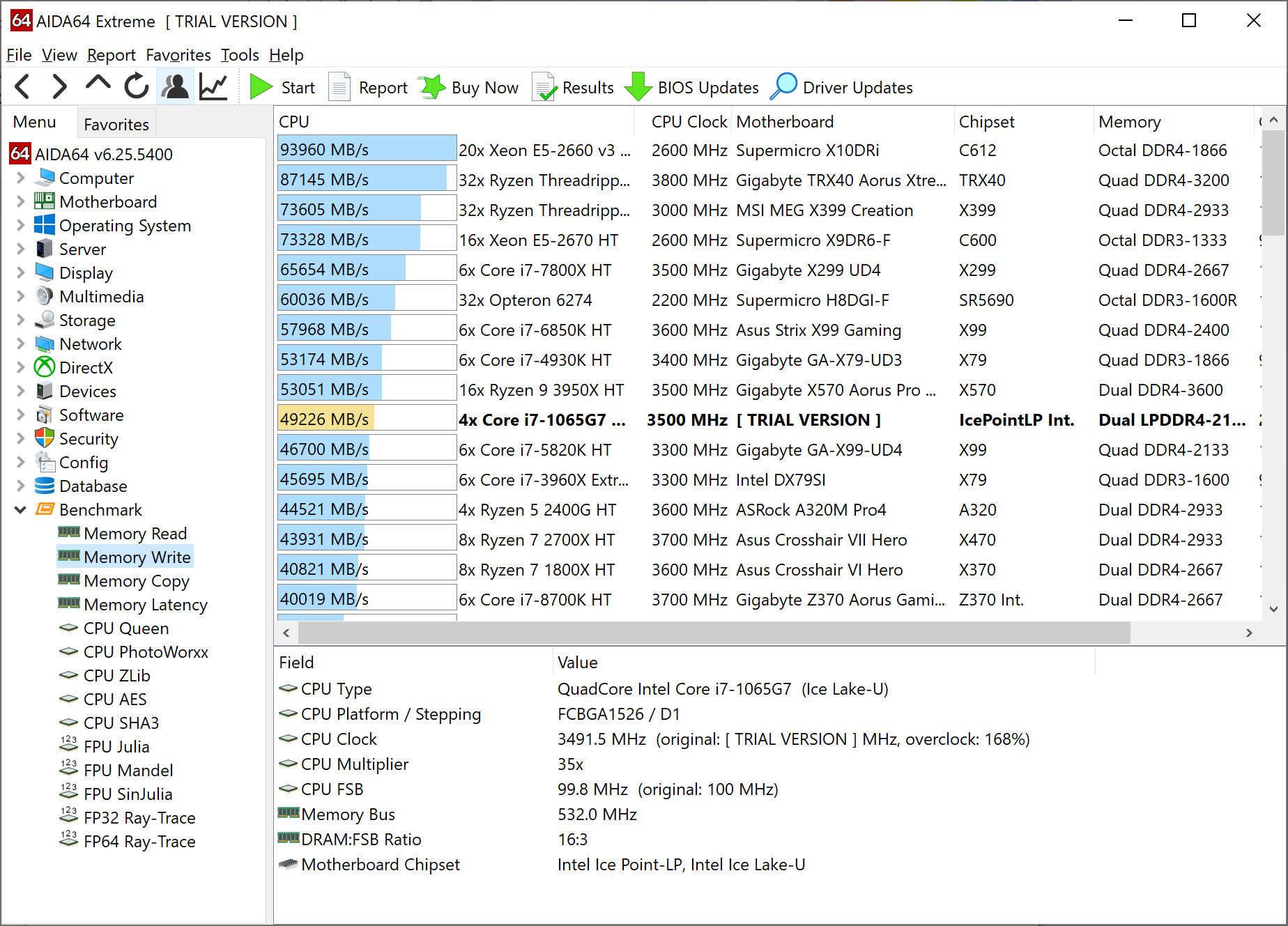 전체적인 메모리 성능은 이전에 테스트를 진행해본 서피스 랩탑 3보다는 좋은 결과가 나왔습니다.