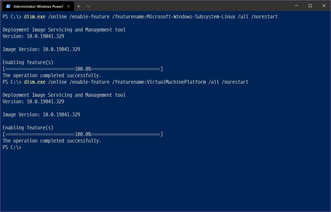 dism.exe /online /enable-feature /featurename:Microsoft-Windows-Subsystem-Linux /all /norestart