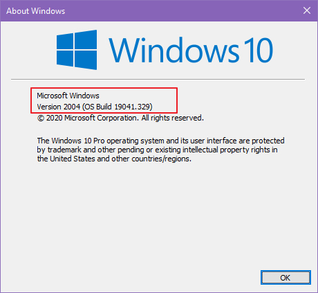 먼저 Windows 10의 버전이 2004 이상인지 확인이 필요합니다.