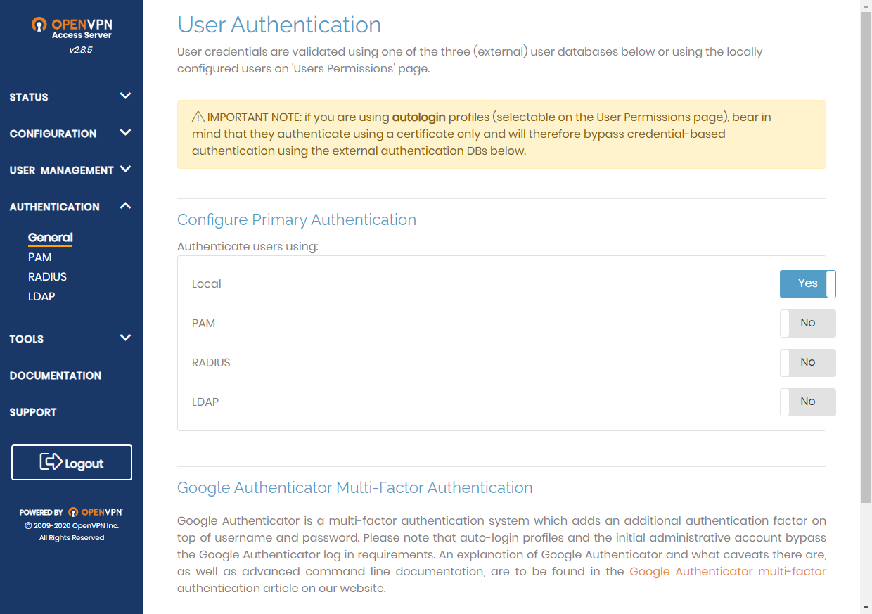 먼저 우측의 AUTHENTICATION 하위의 General 메뉴를 선택합니다.