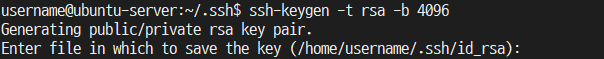 명령어의 username 부분은 실제 서버 접속 시 사용하는 계정을 입력해주면 됩니다.