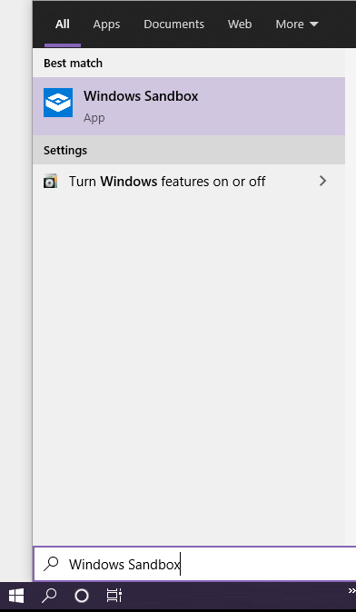 시작 메뉴에서 검색해서 샌드박스 기능을 실행합니다.