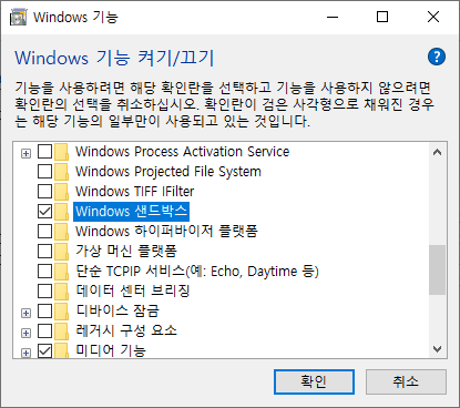 윈도우10의 샌드박스는 기본 기능에 포함되어 있습니다.