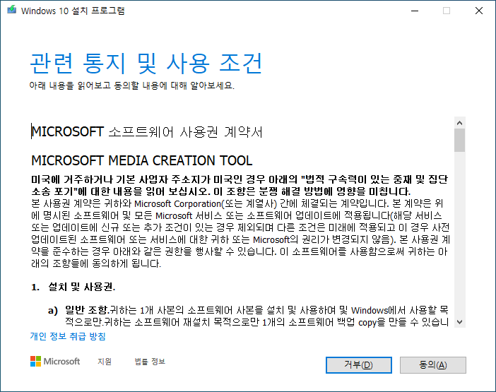 미디어 생성 도구를 실행하면 다음과 같은 창이 표시됩니다.