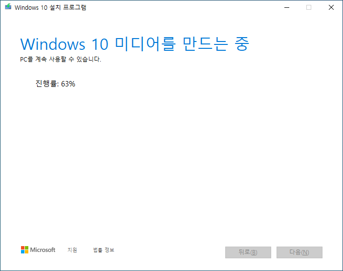 윈도우10을 다운로드하고 USB에 복사하는 동안 진행률을 확인할 수 있습니다.