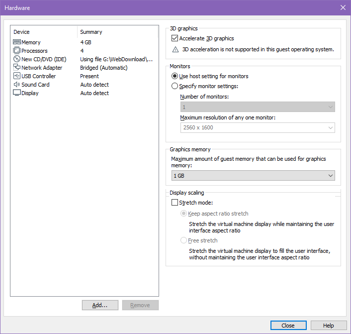 그리고 디스플레이(Display) 설정에서 Accelerate 3D graphics에 체크합니다.