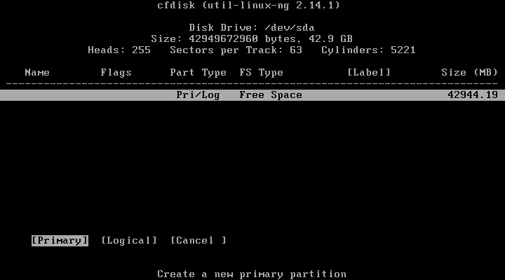 파티션 생성은 Primary를 선택해서 진행합니다.