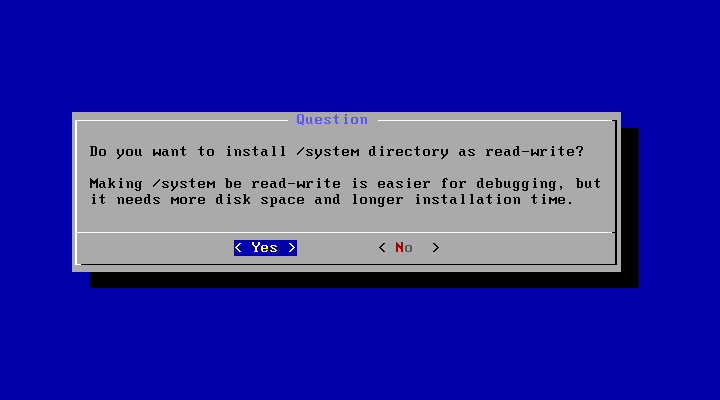 시스템 디렉토리를 읽고 쓸 수 있도록 설정하기 위해 Yes를 선택합니다.
