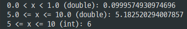 System.out.println("0.0 <= x < 1.0 (double): " + Math.random());