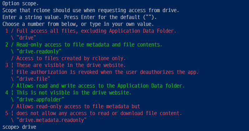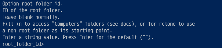 다음은 루트 폴더를 설정하는 내용인데 그냥 엔터를 눌러서 구글 드라이브의 루트를 사용합니다.