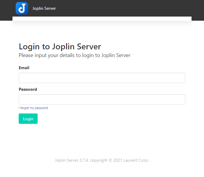 웹 브라우저에 주소를 입력해서 Joplin에 접속하면 다음과 같이 로그인 페이지가 표시됩니다.