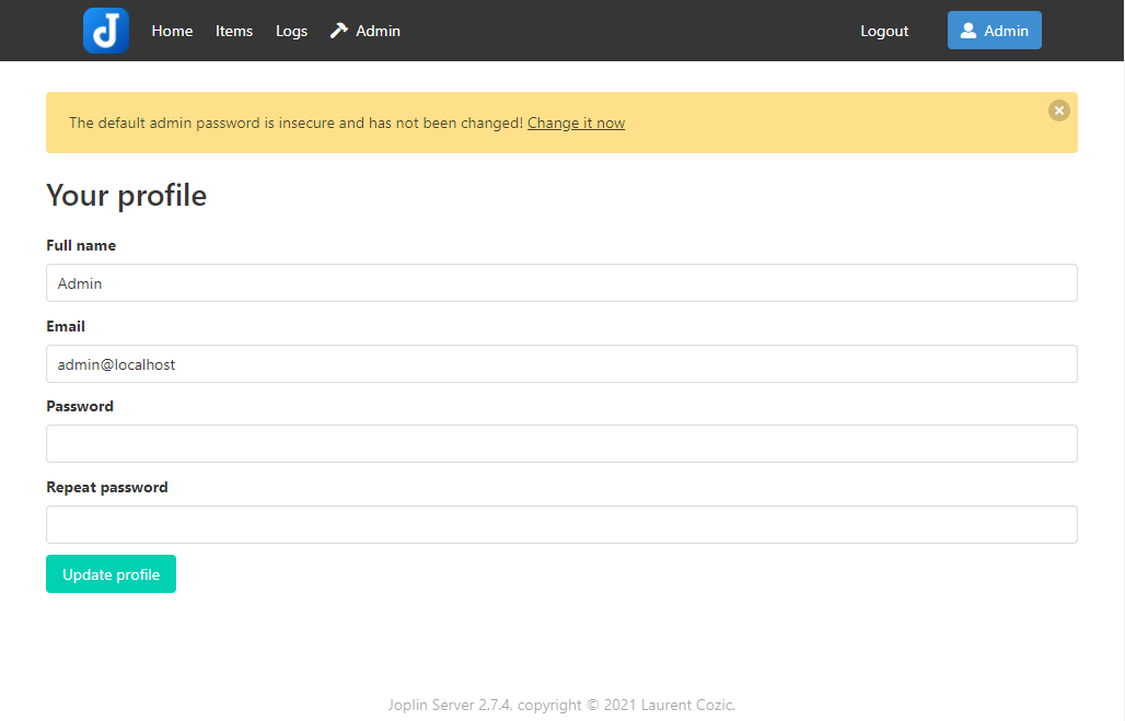 | Joplin Server password | 계정 비밀번호 |