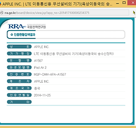 아이패드 에어2, 아이패드 미니3 셀룰러 버전 전파인증 통과