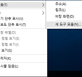 QuickLaunch 썸네일형 리스트형 Windows 10(윈도우 10) 빠른 실행(Quick Launch) 되살리기 윈도우 7이 나오고 그 이후로는 빠른 실행이 기본적으로 사라졌습니다.빠른 실행에 아이콘을 놓고 실행하는 것이 편하기 때문에 추가해서 쓰고 있습니다.윈도우 10에서도 빠른 실행을 추가할 수 있습니다.작업 표시줄에서 마우스 오른쪽을 클릭하면 메뉴가 표시됩니다.도구 모음(T)에서 새 도구 모음(N)을 선택하면 폴더 선택 화면이 표시됩니다. 하단의 폴더 경로에 다음과 같이 입력합니다. %userprofile%\appdata\Roaming\Microsoft\Internet Explorer\Quick Launch 폴더 선택을 누르면 우측에 빠른 실행이 생성됩니다.작업 표시줄에서 마우스 오른쪽을 눌러서 작업 표시줄 잠금이 체크되어 있으면 해제합니다.마우스로 드래그해서 원하는 위치로 이동시키면 됩니다.Quick Lan.. 더보기 이전 1 다음